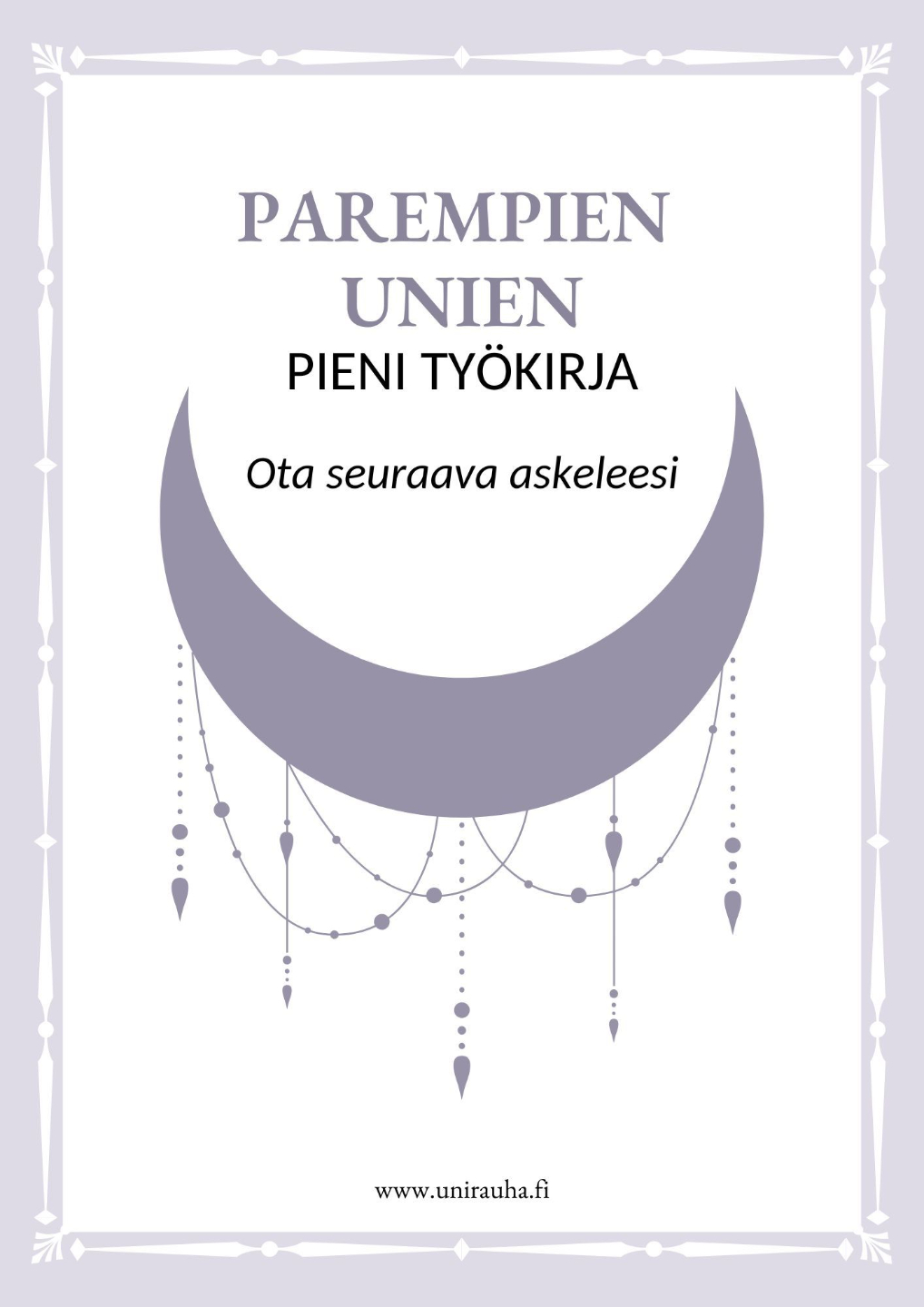 Lataamalla työkirjan liityt Unirauhan sähköpostilistalle, jolloin saat hyödyllistä ja ajatuksia herättävää sisältöä parempien yöuniesi tueksi. Voit peruuttaa viestit koska tahansa yhdellä klikkauksella.